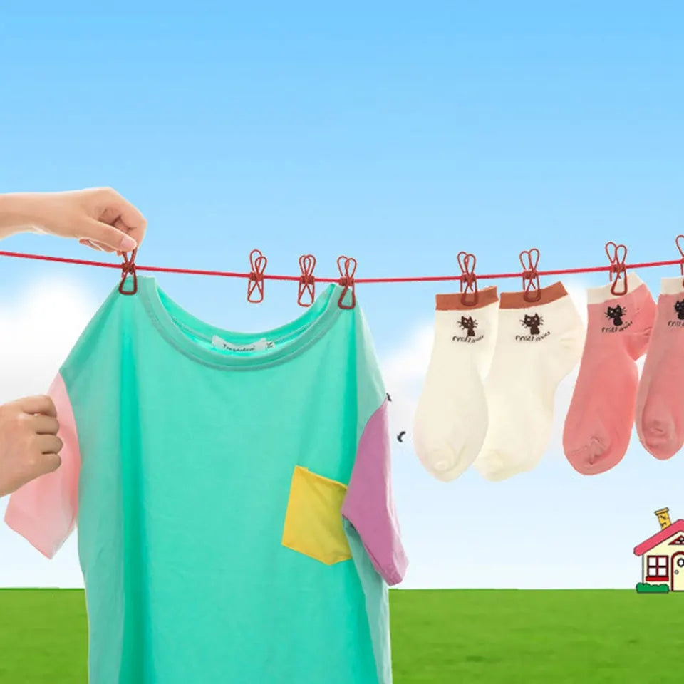 Say goodbye to overcrowded drying racks and tangled clothes! Our Cloth Drying Rope with 12 Clips offers the perfect solution for efficient and tidy laundry drying, whether you're at home, traveling, or even on a camping trip. 🌍