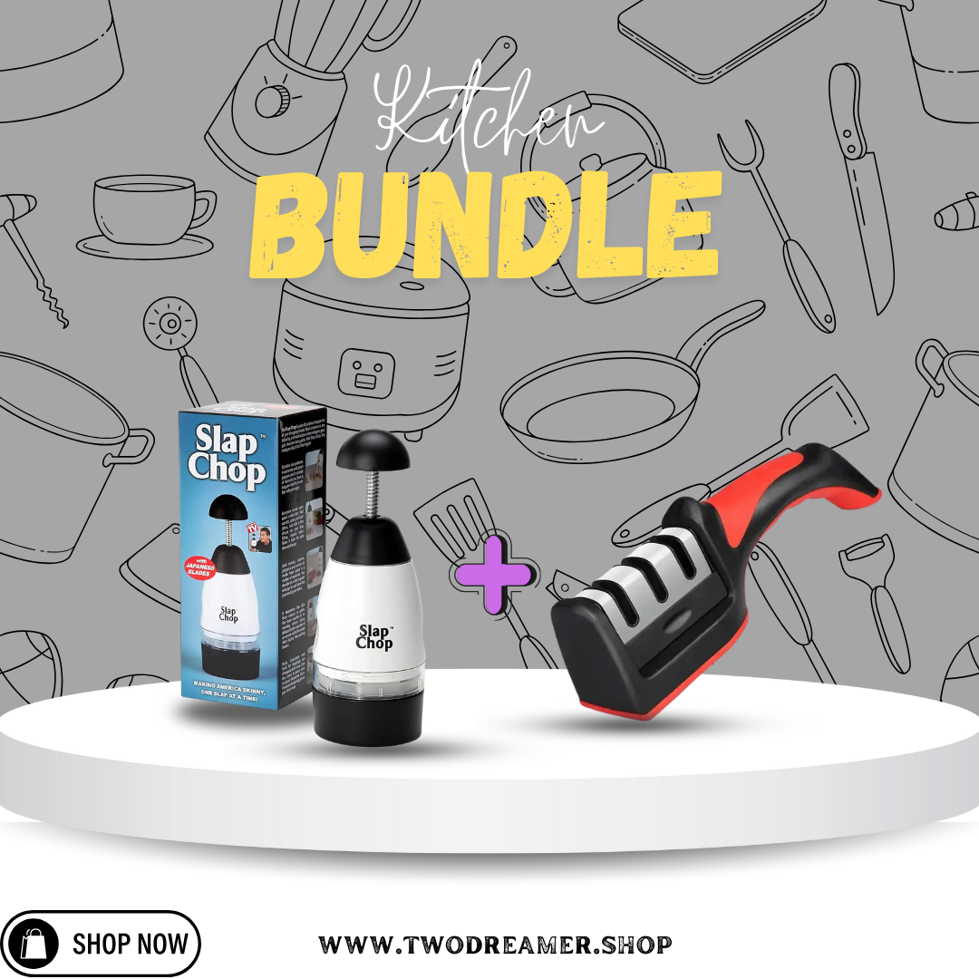 Upgrade your kitchen with this must-have combo – the Slap Chop Food Chopper + 3-Stage Knife Sharpener.